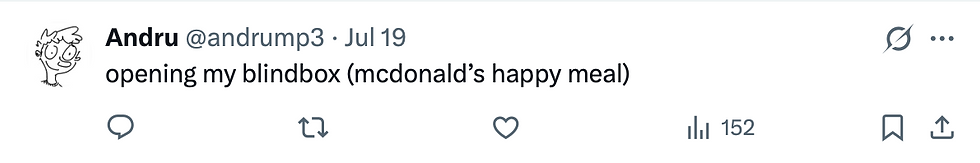 I was cooking here. I think present day blindbox culture is rooted in nostalgia from surprise toys in McDonald’s Happy Meal boxes. I could talk about this for a long time. [152 views]